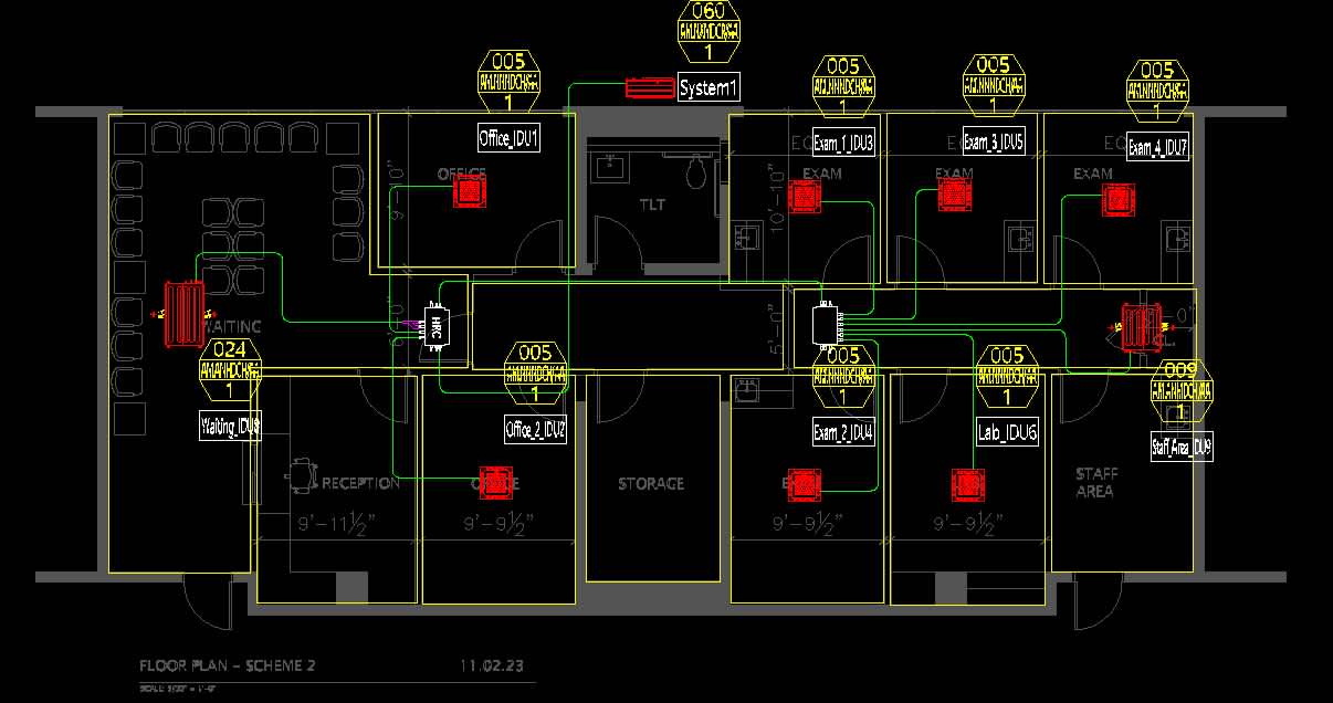 The CAD mode allows for users to incorporate AutoCAD* into the software for easy customization. This mode features automatic calculation of refrigerant piping length and size based on building layout, system check which ensures piping limitations are followed, and automatic selection of Y-joint and header sized per the system layout. It also generates a wiring diagram for selected Central Control options and provides a print out of equipment specifications, piping and wiring diagrams, and the total equipment cost.