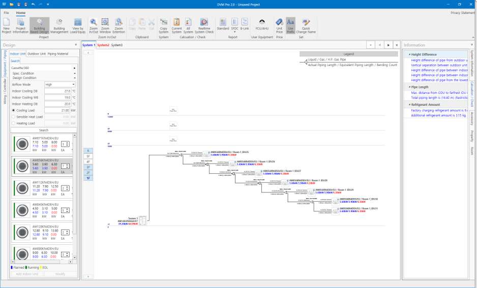 Samsung's DVM-Pro System Design Software is an advanced design selection tool that helps users select the most appropriate VRF or Chiller equipment based on the information provided.