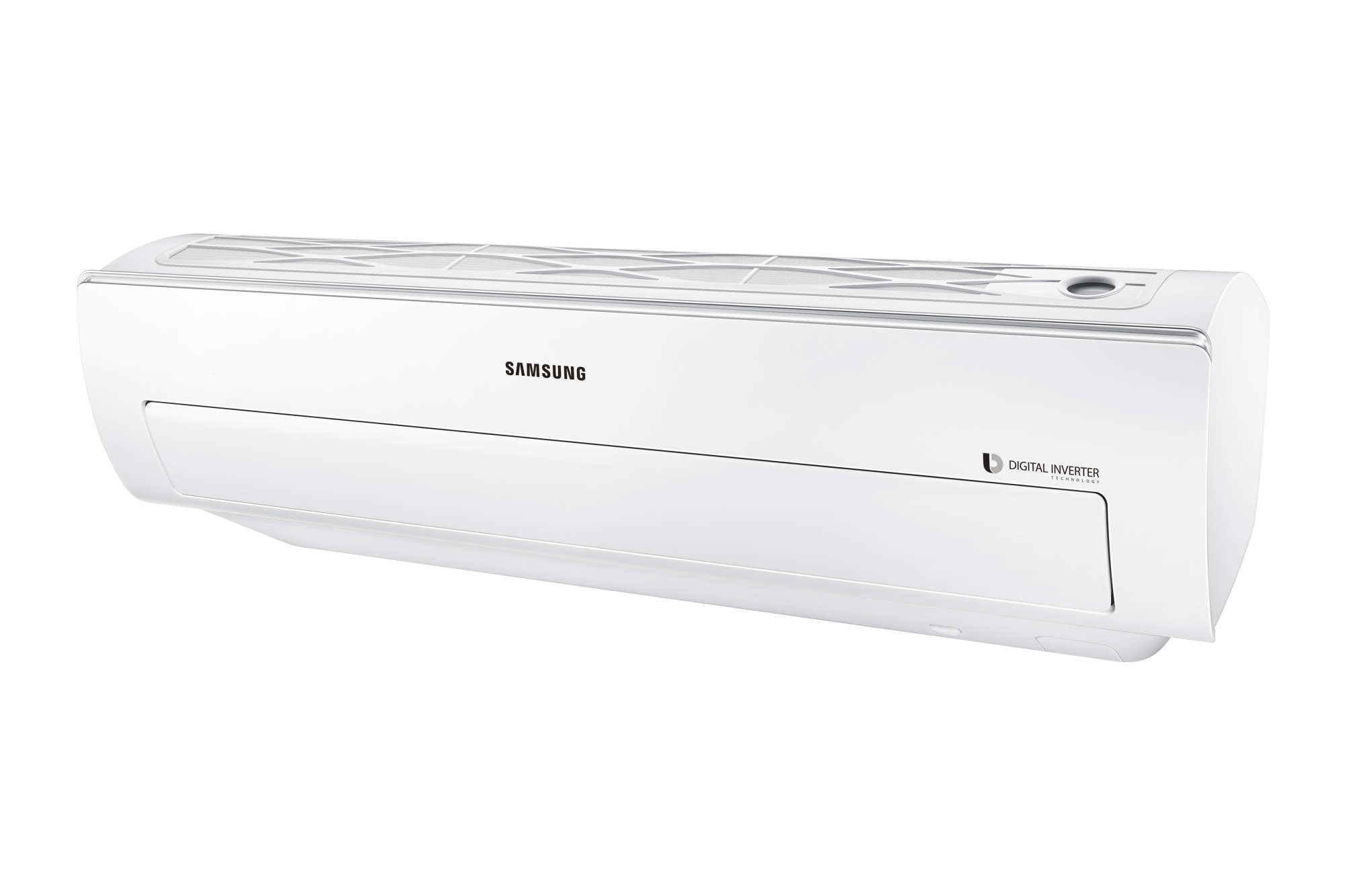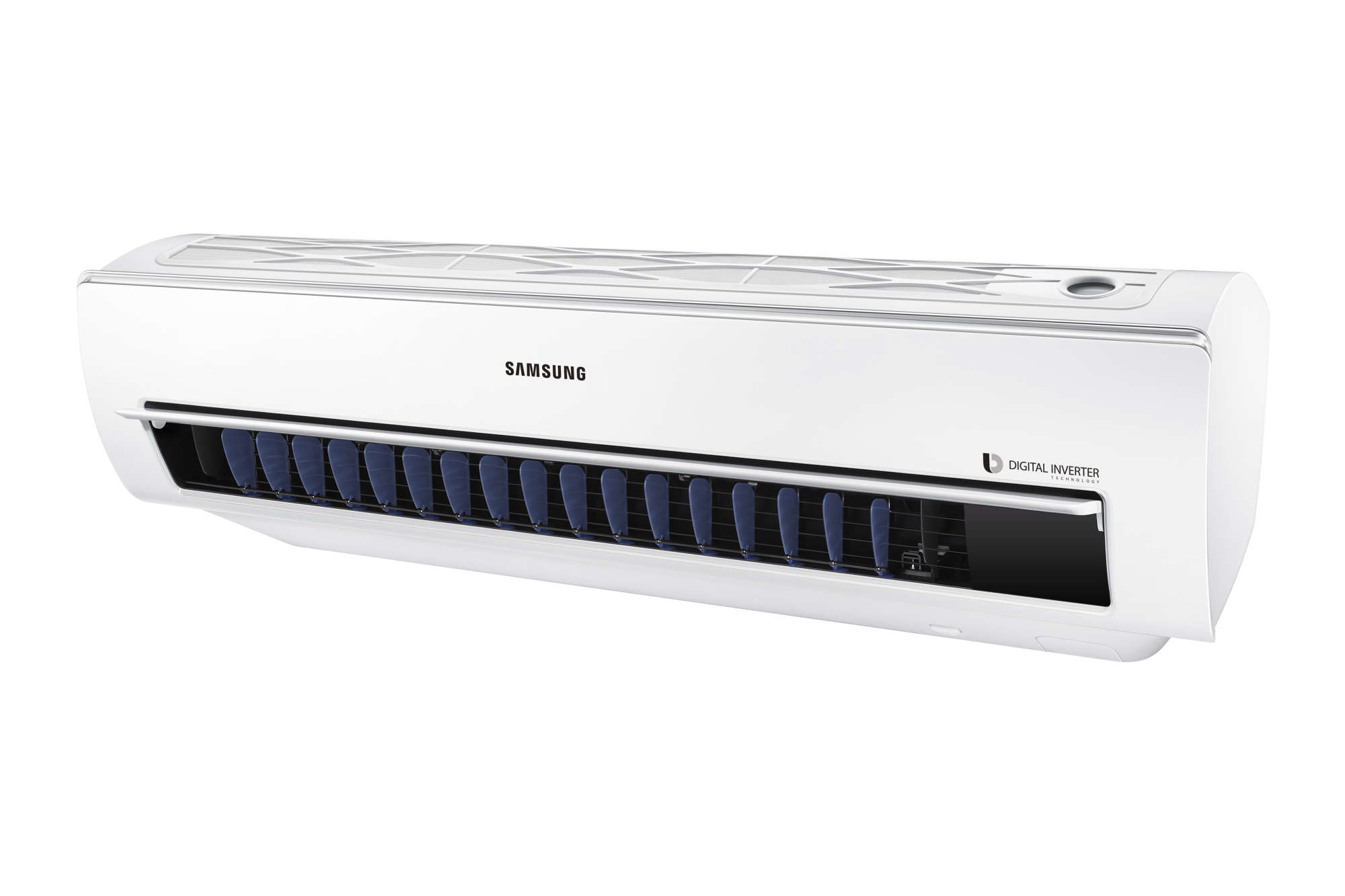 Samsung's latest high-wall indoor unit. Available in 5, 7.5, 9.5, 12, 15, 18, 24, and 28K Btu/h capacities. Its unique triangular design has a wider inlet, so more air can be drawn in. Installation and service is also simplified by allowing access to pipes and wire connections from the bottom of the unit.