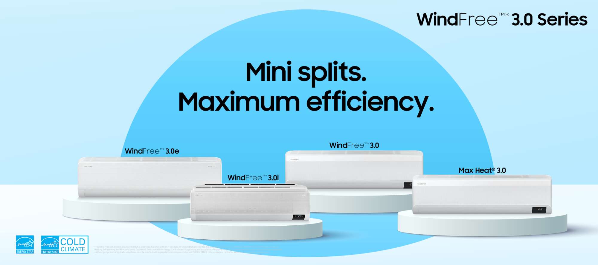 At Samsung, we never settle—and neither should you. That’s why we’ve upgraded our full WindFree™* series to include equipment that performs more amazingly than ever before. Choose from the WindFree™* 3.0, WindFree™* 3.0e, WindFree™* 3.0i, or Max Heat® 3.0 depending on the solution you’re looking for.
